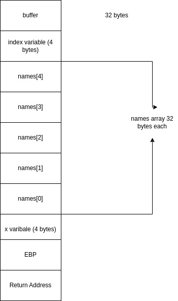 compile with gcc -O0 -fno-stack-protector -fPIE -no-pie -z execstack -m32 oob.c