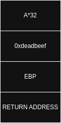 if we enter more than 32 bytes the x variable will be overwritten. So we have to enter 32 bytes that will fill the buffer and then another 4 0xdeadbeef to overwrite x