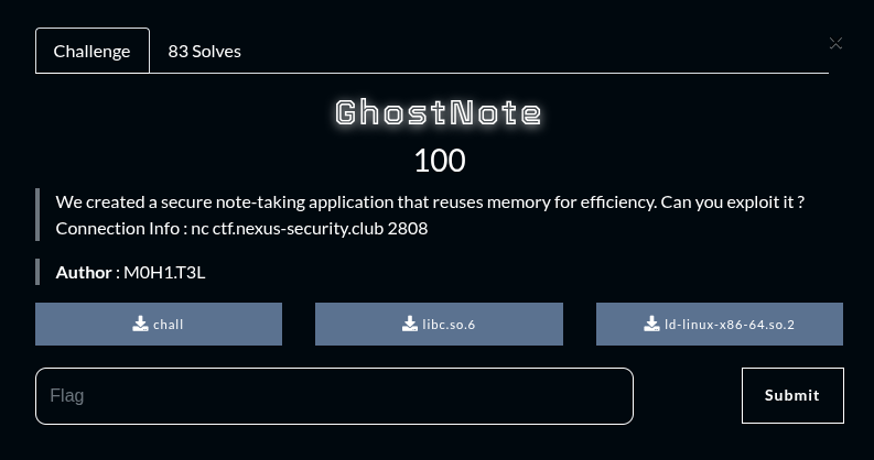 gn.add_note(9, 0x10, b"/bin/sh\x00") # to prevent consoliddation | will be used later on again